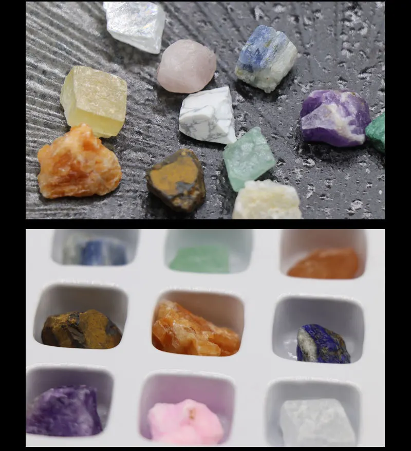 20pcs/Set Natural Stone Box Fossile Healing Quartz Raw Mineral Rock Crystal Agate Specimen For Education Home Decor Energy Reiki | |