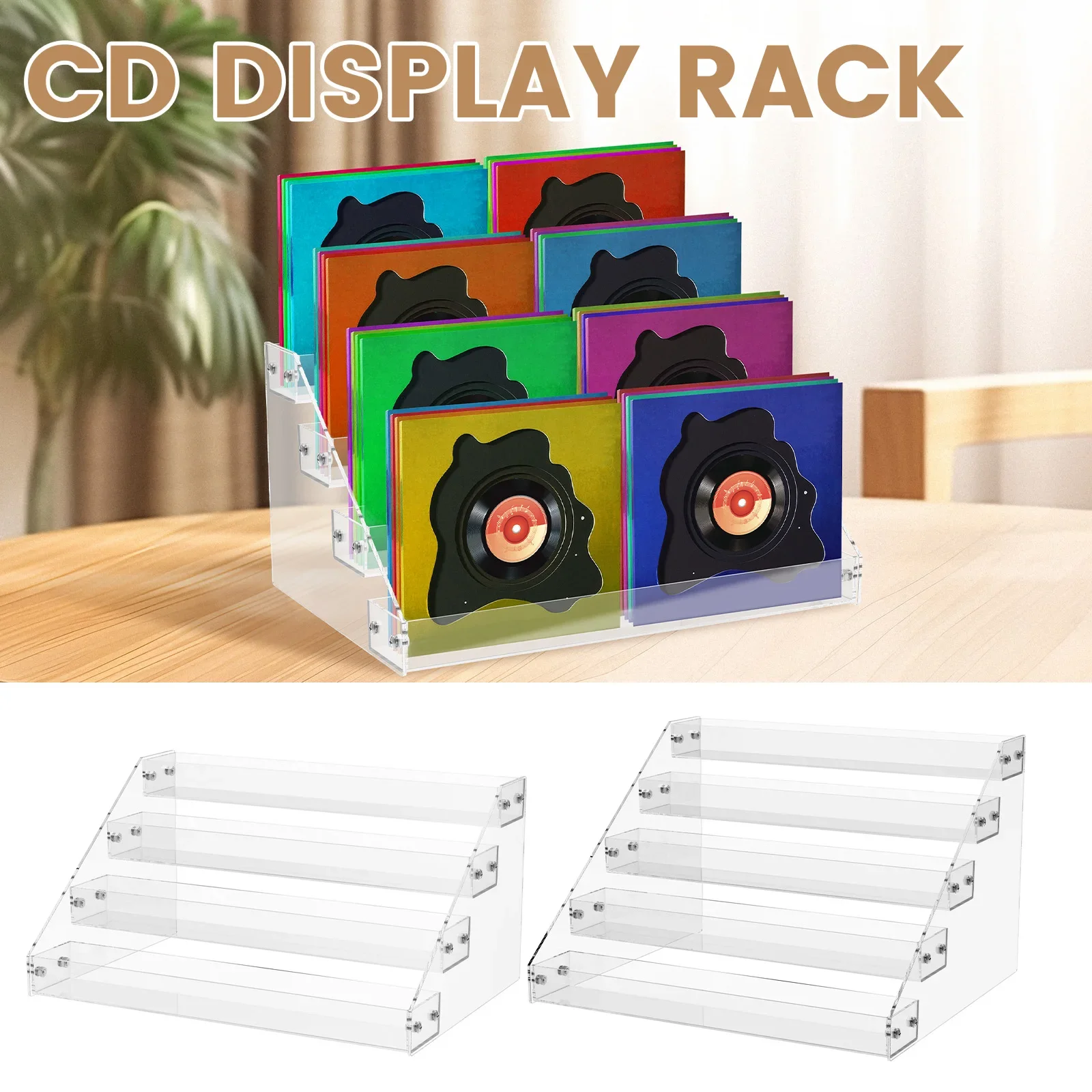 A strong and stylish transparent acrylic display stand available in 4 or 5 tiers, perfect for organizing and showcasing various items from cosmetics to collectibles on any desk or counter.
