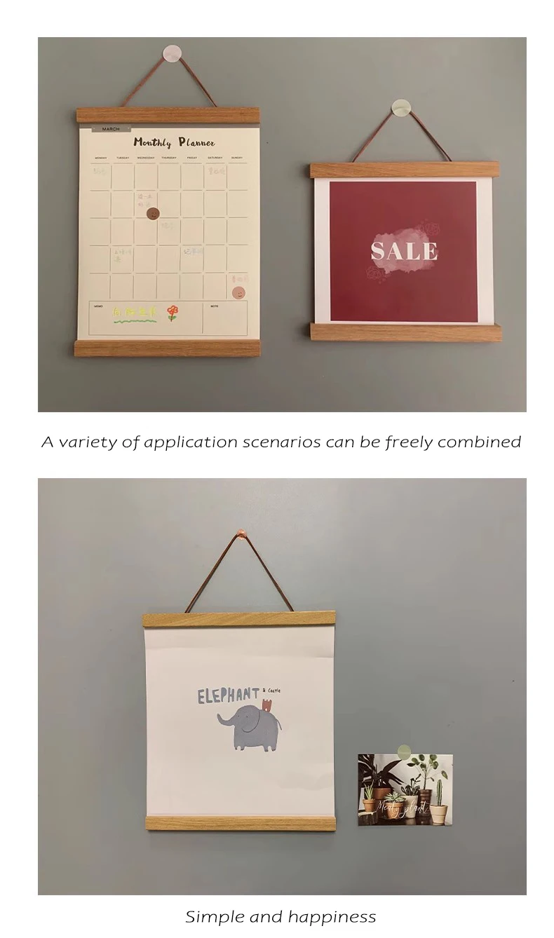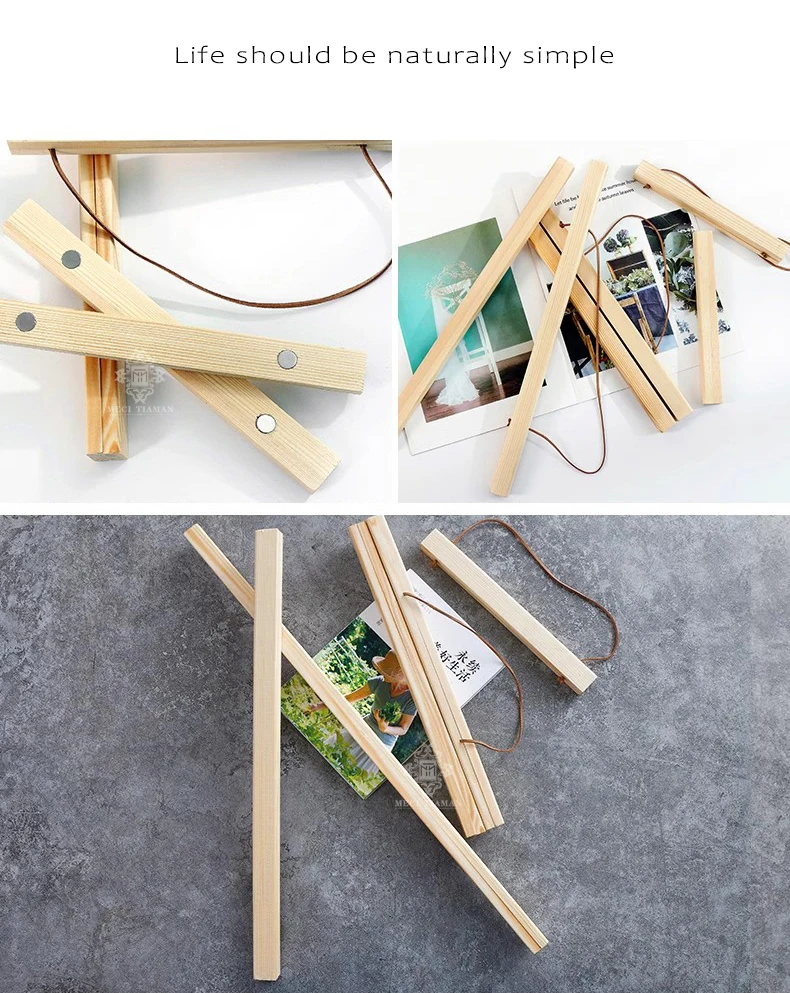 60Cm Magnetic Poster Frames Hanger Wooden Hanging Frame Picture Painting Poster Holder Natural Teak Photos Scroll Wall Art Decor