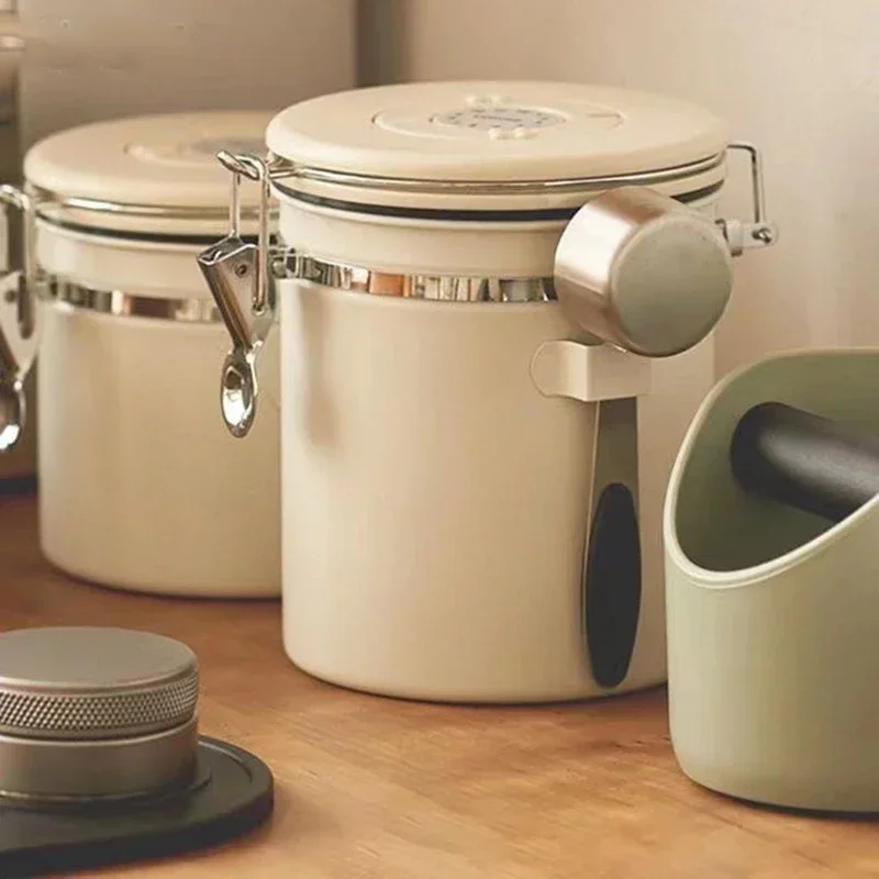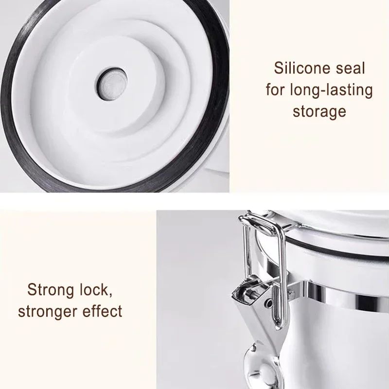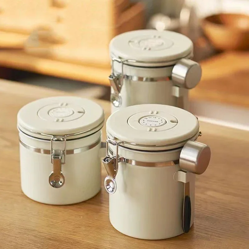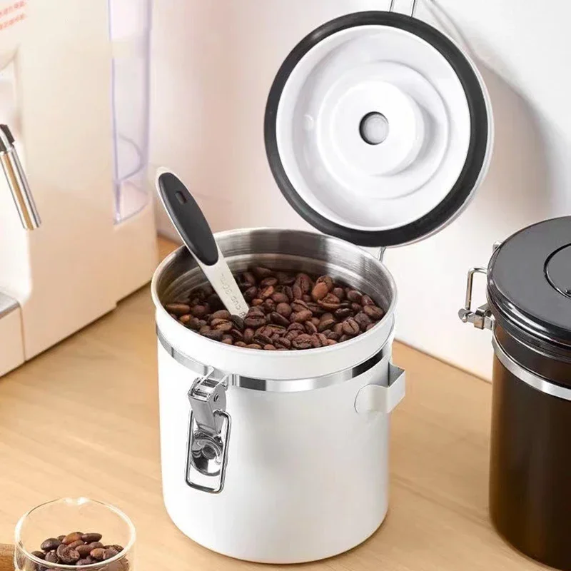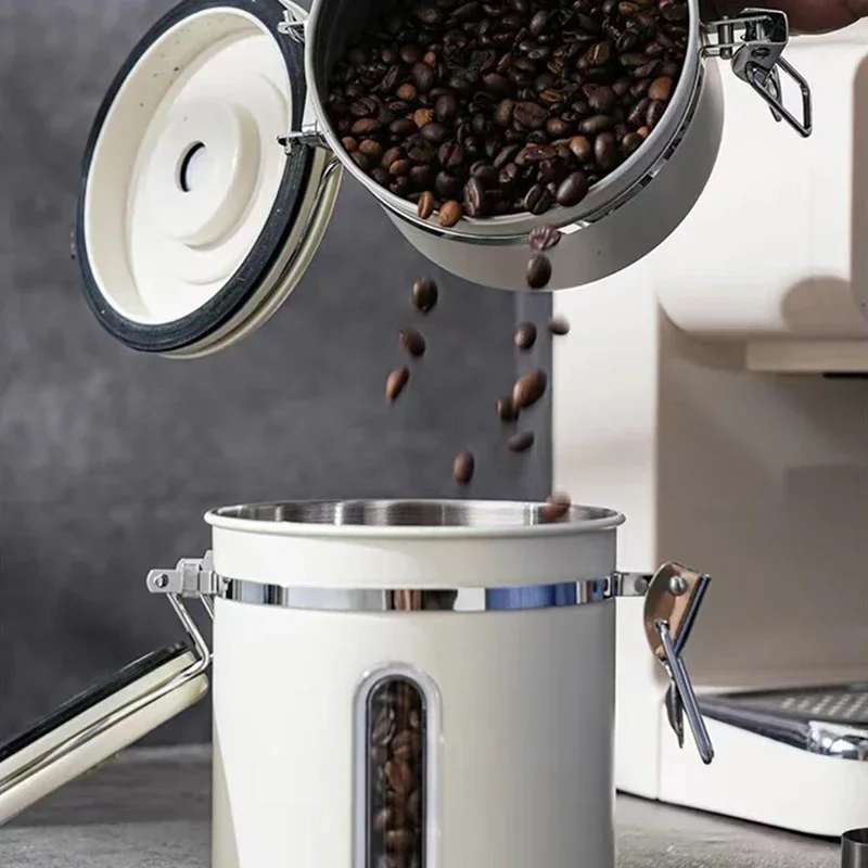 This premium 304 stainless steel storage jar, complete with a spoon, provides large capacity, airtight vacuum sealing, a one-way exhaust valve, and a date tracker to ensure the long-lasting freshness of coffee beans, grains, and nuts.