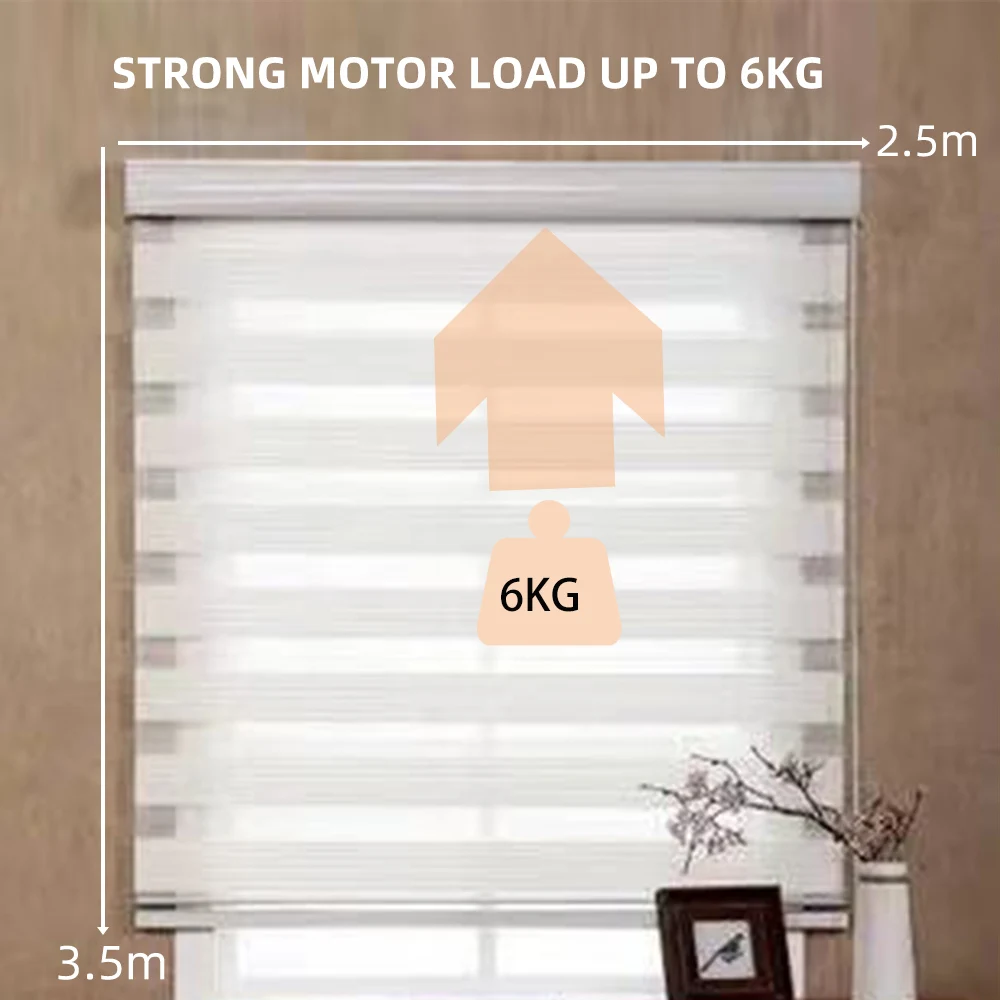 Smart curtains roller blinds motor is suitable for the maximum size of the rolling shutter within 2.5m*3m, as shown in the figure below,It can pull up to 6KG of fabric