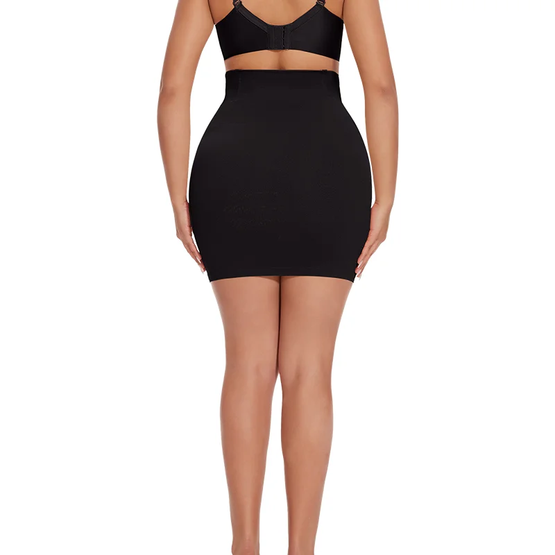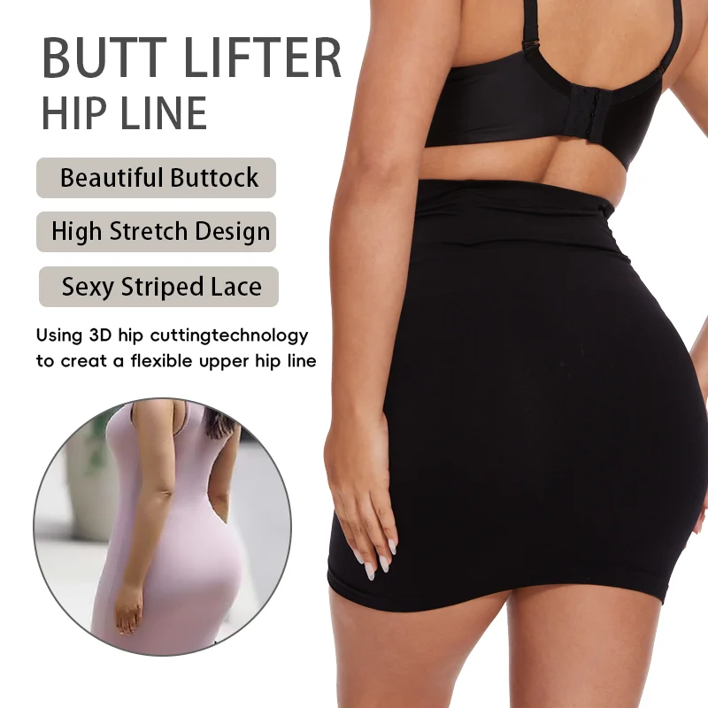 Women Sexy Built-In Thong Dress Half Slip Shapewear High Waist Seamless Butt Lifter Knee Length Body Shaper Anti-Slip Skirt